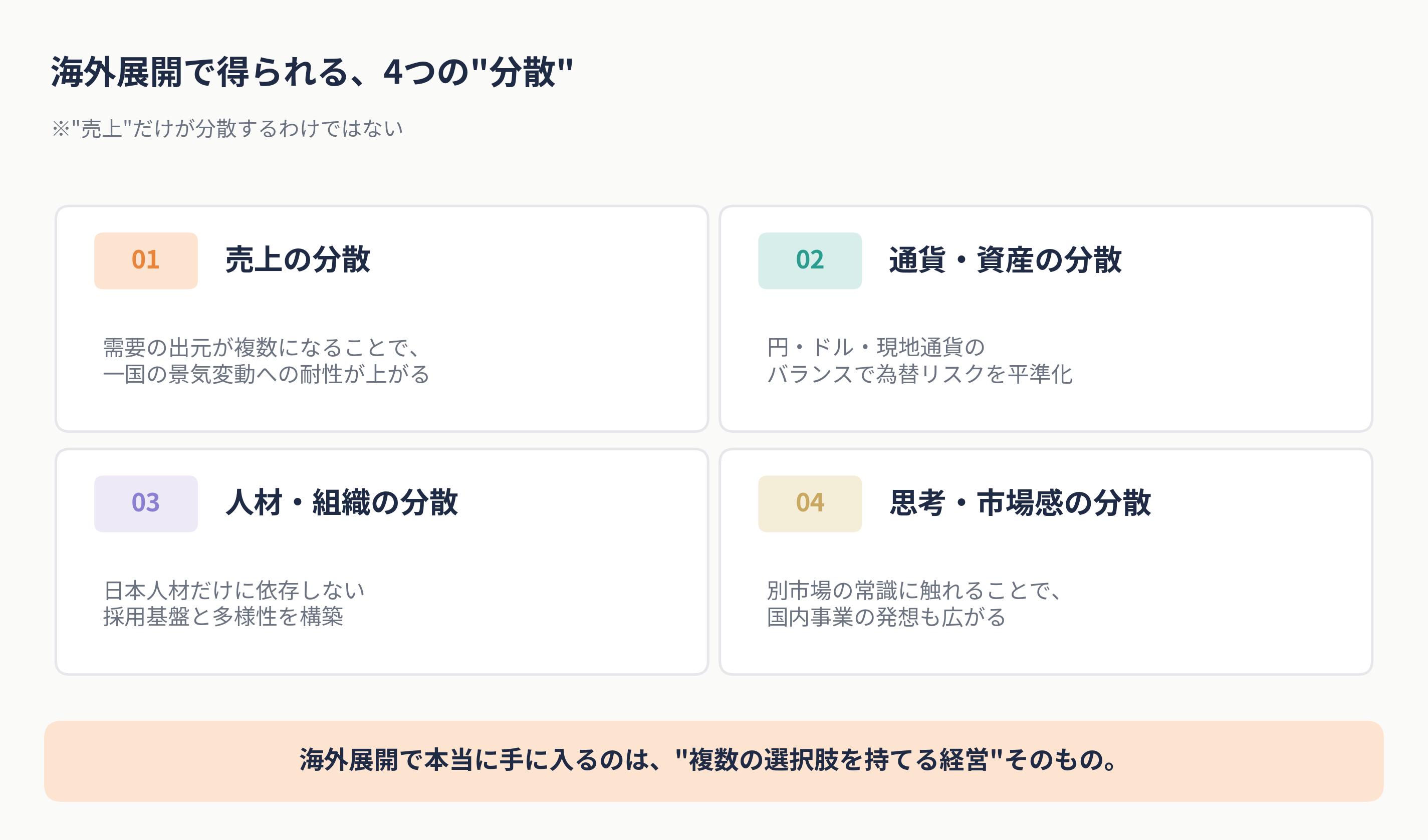 5.海外進出は”分散ポートフォリオ”の組み立て